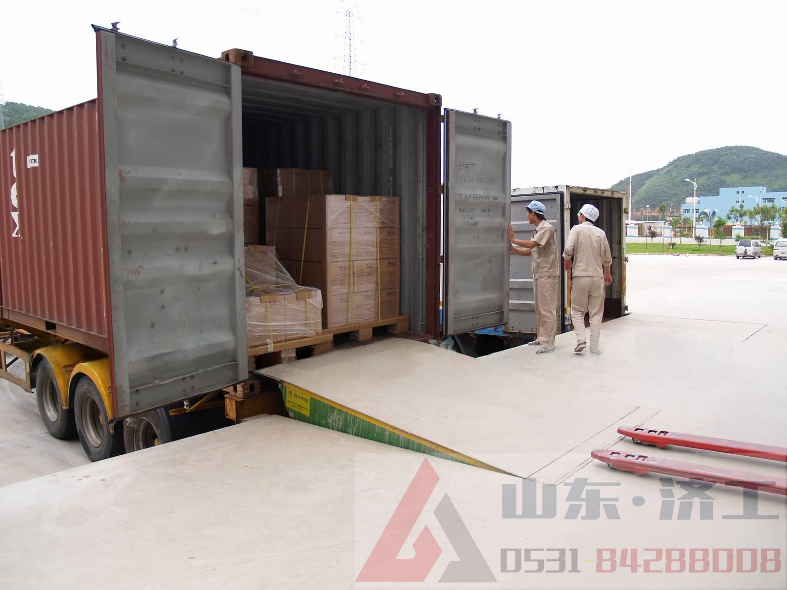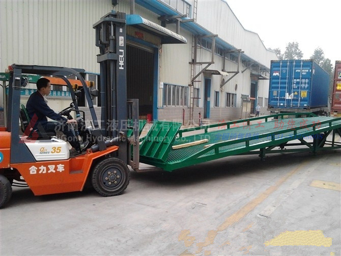 移動式液壓登車橋是與叉車配合使用的貨物裝卸輔助設備,可根據汽車車廂的高低調節高度,叉車可以直接通過本設備駛入車廂內部進行貨物的批量裝卸,僅需單人作業,即可實現貨物的裝卸。它使企業減少大量勞力,提高工作效率,獲取大經濟效益