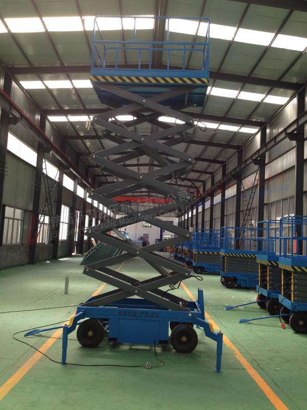 移動式升降機(6米8米10米12米14米16米18米移動式升降機)有人工移動式升降機、電動移動式升降機,另備有手壓泵,供停電時使用,具有移動靈活、升降平穩、操作方 便、載重量大等特點。升降動力分為220V或380V電源,采用國外和國產液壓泵站。主要適用于工廠、物業單位、商店裝潢、建筑、裝飾、場館館布置、會議 中心等行業。