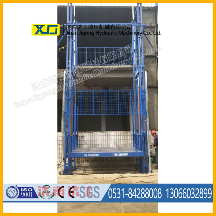 載重能力大,室外貨梯簡易電梯是靠液壓千斤頂?shù)脑韥眄斏I廂的,可采用多個(gè)油缸同時(shí)作用提升載重的轎廂。 噪聲低,液壓系統(tǒng)可遠(yuǎn)離井道設(shè)置,隔離了噪聲源。