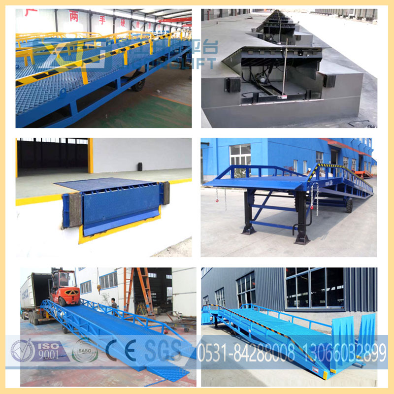 產品規格:根據承載能力產品分為:6、8、10噸液壓登車橋,移動式液壓登車橋是叉車配合使用的貨物裝卸輔助設備,可根據汽車車廂的高低調節高度,叉車可以直接通過本設備駛入車廂內部批量作業,設備采用手動液壓方式無需外接電源,省時省力,提高工作效率。